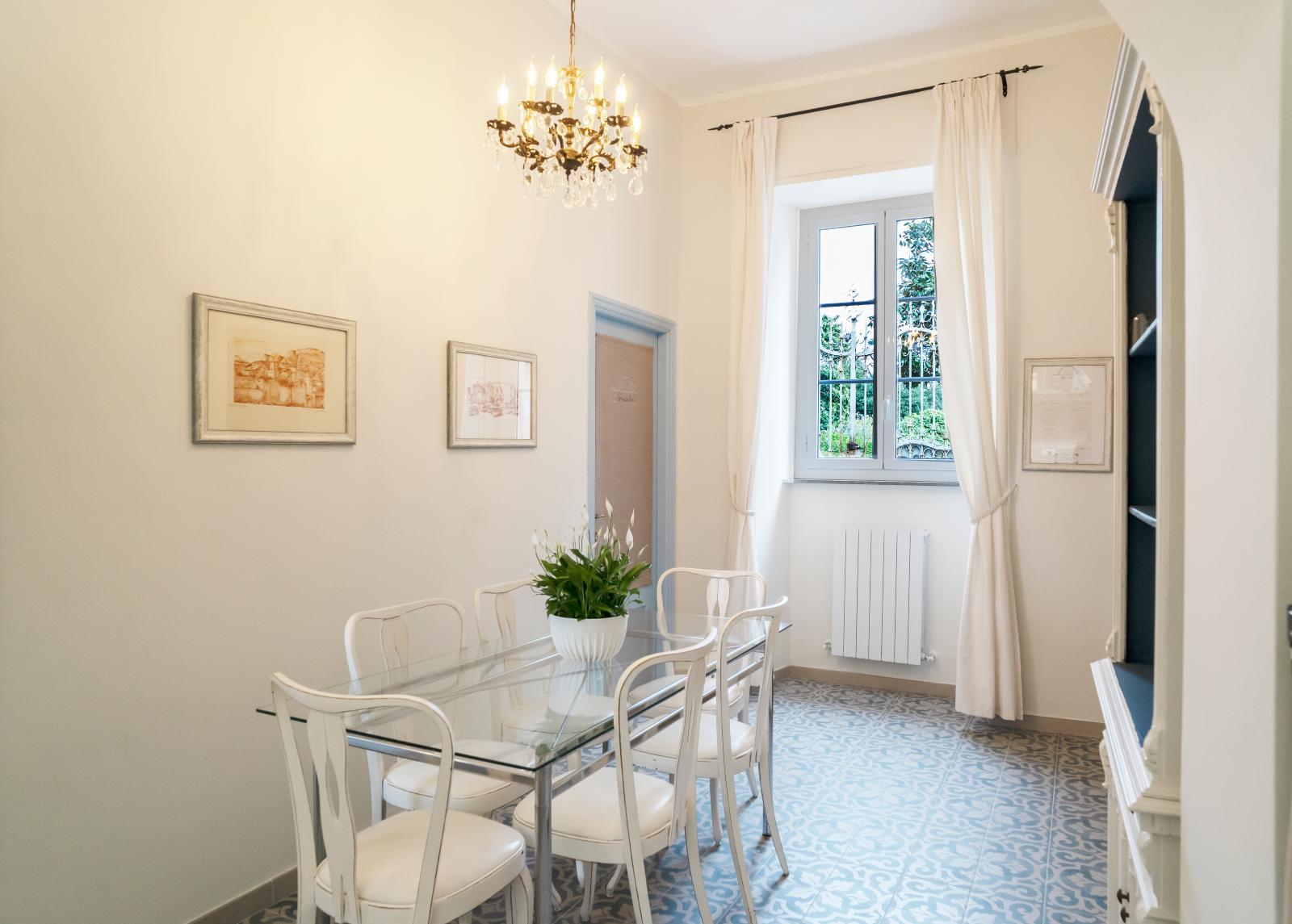 The bedroom window overlooks Via Della Rovere right in front of the magnificent park of Villa Gavotti and allows you to enjoy the peaceful tranquility of the village.